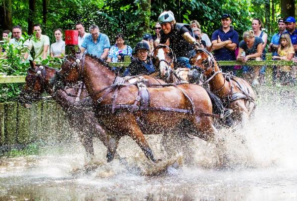 EXLOO - Regerend wereldkampioen Marijke Hammink uit Bornerbroek bevestigde zoals menigeen verwachtte dit weekend haar status tijdens de internationale menwedstrijden in het Drentse Exloo, Bij de vierspannen pony’s won ze alle drie onderdelen voor het CAI3*. (30-03-2025)