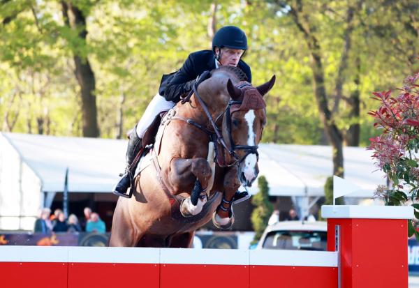 TUBBERGEN – Rob Scherphof snelde woensdag met zijn negenjarige bruine merrie Miss Montreal (v. Vigo d’Arsouilles) de concurrentie ver vooruit in de toprubriek van de eerste dag van het concours van PSV Het Twentse Ros Albergen.  (15-04-2026)