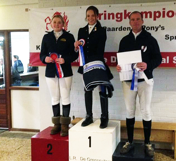 Lotte Krijnsen zegevierde in de klasse Z2 met Rozenstolz (v. Rotspon). De Enschedese werd door de jury gewaardeerd met 66,03 procent en dat was voldoende om Kyra Zeimentz met Delicious (65,74) en Rom  Vermunt met Finels Field (63,46) naar de tweede en derde plek te verwijzen. Op de foto hieronder het podium van deze klasse.