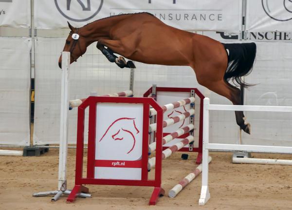 SAASVELD – De vierjarige bruine ruin Ribolensky (v. Ibolensky x Action Breaker x Canturano I) werd maandag in de prima gevulde Ankerhal te Saasveld gekroond tot winnaar van de met veel kwaliteit gezegende finale van het vrij springen door drie- en vierjarige paarden. (29-04-2025)